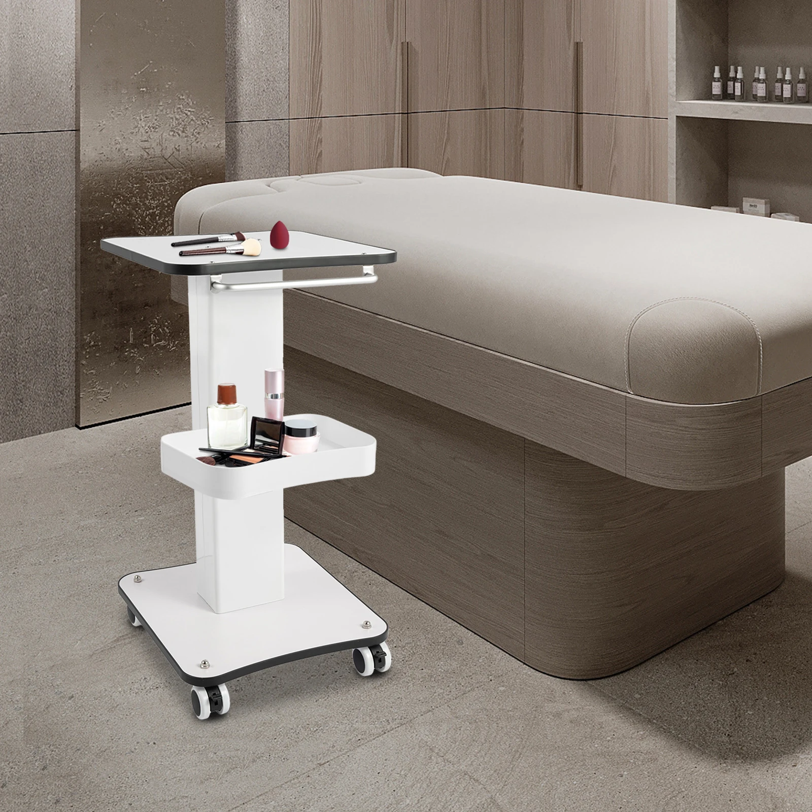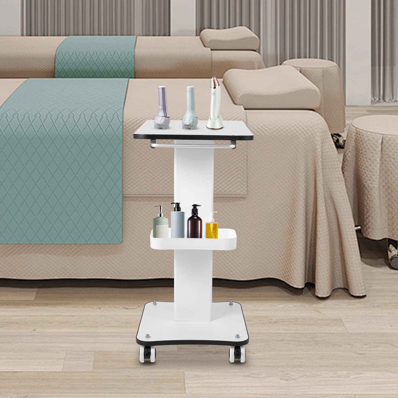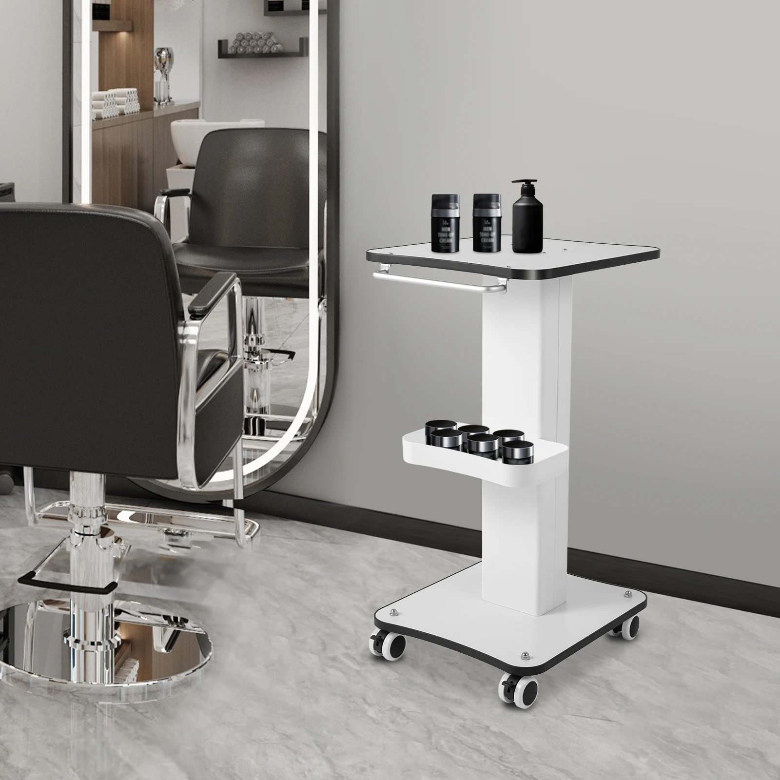 It is very suitable for placing various beauty equipment and other items in salons, shops, beauty salons, hair salons, medical shops, etc., such as small bubble beauty devices, oxygen injectors, eyebrow washers, water bottles, curling irons, etc.